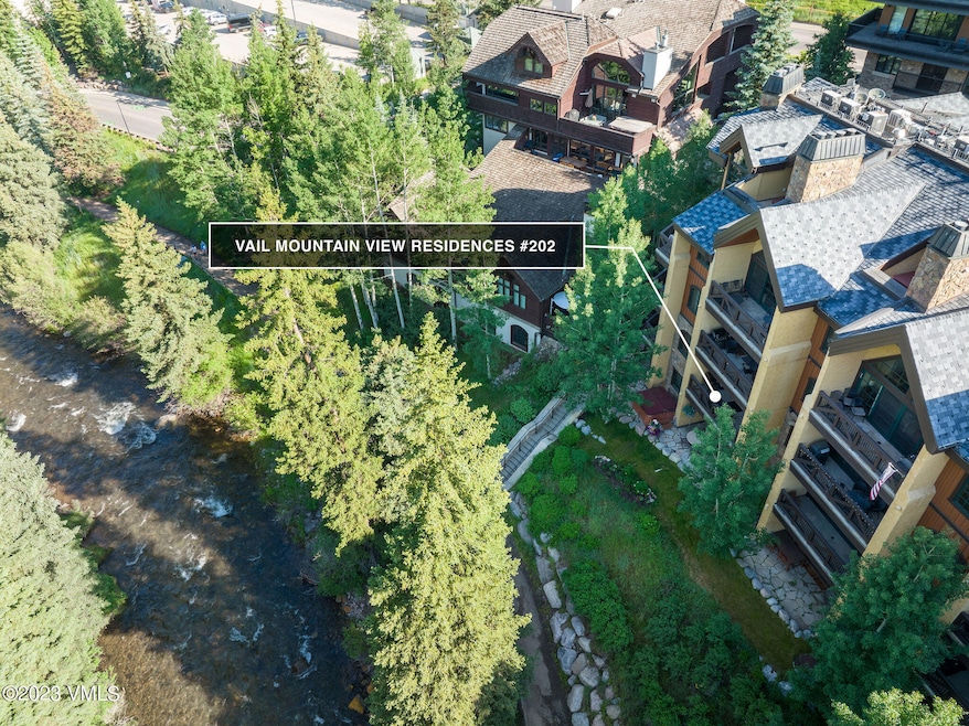 Nestled directly above the picturesque waters of Gore Creek, Vail Mountain View Residences #202 is the epitome of mountain living at its finest. Wake up to breathtaking ski slope views from the comfort of your own home, hearing nothing but the musical waters of the creek dancing below! This custom upgraded creekside residence will captivate you with its timeless blend of contemporary elegance and mountain-modern charm. Designer-selected details throughout have been thoughtfully curated so as to create a warm, tasteful and luxurious atmosphere, ensuring you feel right at home the moment you step through the door. The open floorplan invites memorable gatherings of family and friends, while floor-to-ceiling sliders in the main living area flood the space with natural light, opening up to the picturesque views that surround you and the creek below. The gourmet kitchen with central island is a chef's delight, and one of the focal points of the home. Immerse yourself in the serene beauty of nature as you sip your morning coffee or apres ski wine on the large, oversize covered balcony, taking in the soothing sounds of the creek and the majestic views of Vail Mountain. Firing up the gas grill at dinnertime will be another favored activity. A heated swimming pool and outdoor hot tub are sure to be a hit after a big day on the slopes. Private ski and storage lockers provide room for all of your mountain toys. The gated garage includes two assigned parking spaces, plus overflow guest parking, ensuring convenience and security. All of this is capped off by a superbly convenient location, located on the periphery of Vail Village and but a quick, picturesque creekside stroll to the Covered Bridge in one direction, and the Betty Ford Alpine Gardens and Ford Amphitheater in the other. Perfect! Don't miss this exceptional opportunity to live your mountain dreams, where nature, luxury, convenience and adventure seamlessly blend for the perfect alpine getaway.