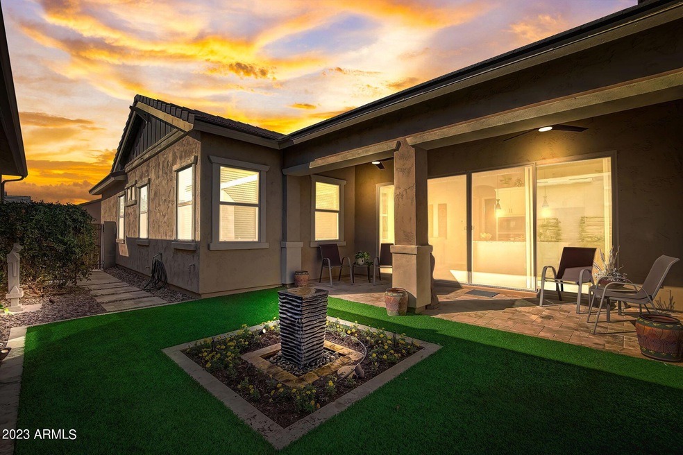 The spacious kitchen is a chef's delight, featuring pendant lights, new hardware, stainless steel appliances, and granite countertops. Double sliding doors beckon you to the backyard oasis, complete with a paver patio, fountain, and desert landscaping. Practical touches abound, such as the utility room plumbed for a sink and closet doors equipped with automatic lights. Enjoy modern conveniences like keyless entry tied to the internet. As part of a vibrant community, relish access to a pool, splash area, playground, and a large field. This Gilbert gem is more than a home; it's a lifestyle.