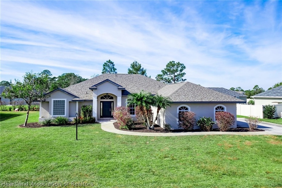 Custom-built 3BD/2BA home plus office, with over 2300 living space. This home is situated in one of the most popular areas in Highlands County-Sun N Lakes and is surrounded by newer homes. Freshly painted inside and out, spacious kitchen, multi-level cabinets, brand new LG stainless appliances, wrap around high bar and an island. Tray ceiling with crown molding in the owner's suite, his and her vanities, block glass that provides natural lighting, garden tub, tiled shower and a large walk-in closet. Separate dining area, breakfast nook, 14 x 18 office, 2 additional private bedrooms, in house laundry room with upper cabinets, wash tub and extra storage space. Oversized garage with a golf cart bay. Additional updates include: New roof 2022, AC 2017, garage door opener, fans, vinyl plank flooring in the bedrooms and much more. Large screened back porch, beautiful curb appeal, mulched and landscaped. This community offers: 2 championship golf courses, tennis courts, fitness center, swimming pool, a restaurant and much more. You are going to love this floor plan. Move-in ready. Priced to sell!!