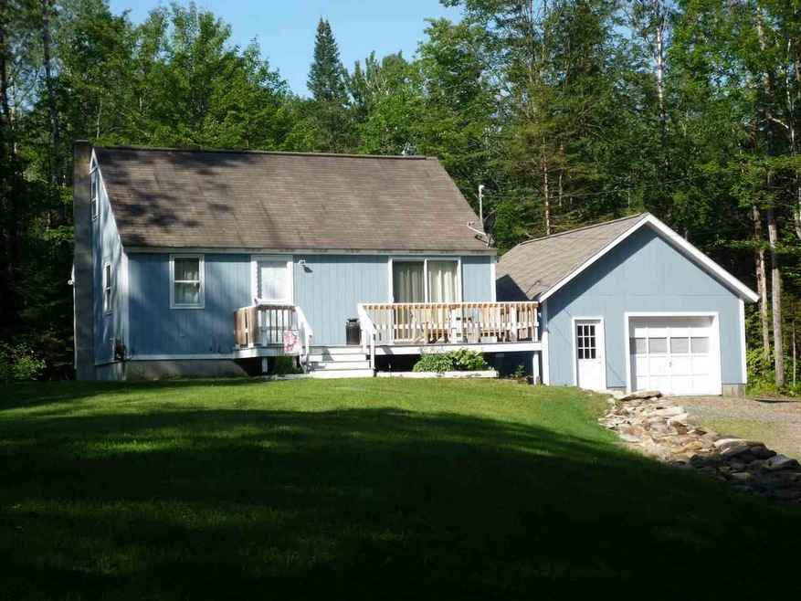 Efficient and inviting 3 bedroom home including loft, privately located well back from the road but with excellent access on 8.44 acres. A new 20x24 garage with direct entry to the basement provides parking, work space and storage. The house is well insulated and easy to heat, and very charming with an open kitchen/living/dining area looking to the new stonework outside and a nice view toward Waumbec and Starr King of the Pliny Range. The yard is ample for play and gardens. This is an excellent home for your residence, retirement, or vacation use, located just a step from the Conte Wildlife Refuge, trails and year round recreation.