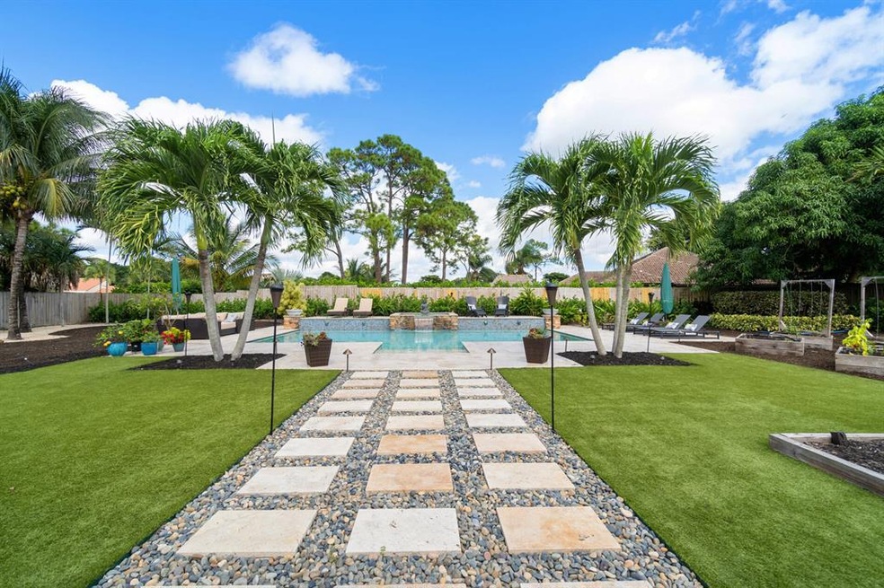 Located in the quiet, highly desirable Seagate Country Club that has a championship 18-hole golf course, gorgeous landscaping, tennis, pickle ball, beach club, marina and fine dining, but where membership is not mandatory. 5208 Foxpointe Cir is located on a 170 ft deep, 0.4 acre lot, enjoys updated landscaping, new outdoor lighting, and is perfect for entertaining and living the Florida lifestyle, complete with al fresco dining for 10 under the pergola, seating for 8 at the custom bar, a sail-shaded lounge area that comfortably seats 6+ who can visit or watch the outdoor TV. There is an oversized 20' x 40' salt-water system (new) pool and spa with waterfall, fountains, custom LED lighting, all of which is fully controlled from your phone or tablet via the newly installed iAquaLink app.