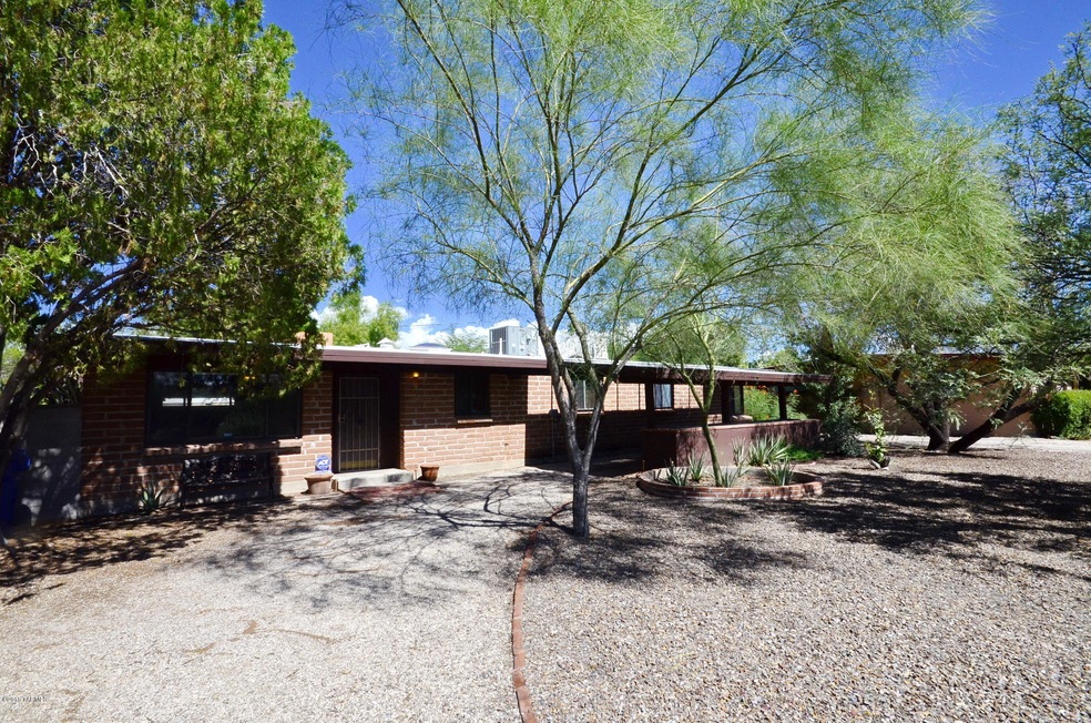 This CLEAN and move in ready southwest home with excellent curb appeal boasts stone floors, lots of exposed brick, inviting fireplace in the family room, built-ins in the dining area and one of the bedrooms, and bright kitchen with all appliances! Dual cooling. Very clean backyard with large covered patio, mature trees and planters, and a new block wall for added privacy. Extra storage closets on east side of home including a small work shop area. Surrounded by mature desert vegetation. Community pool and park within walking distance!