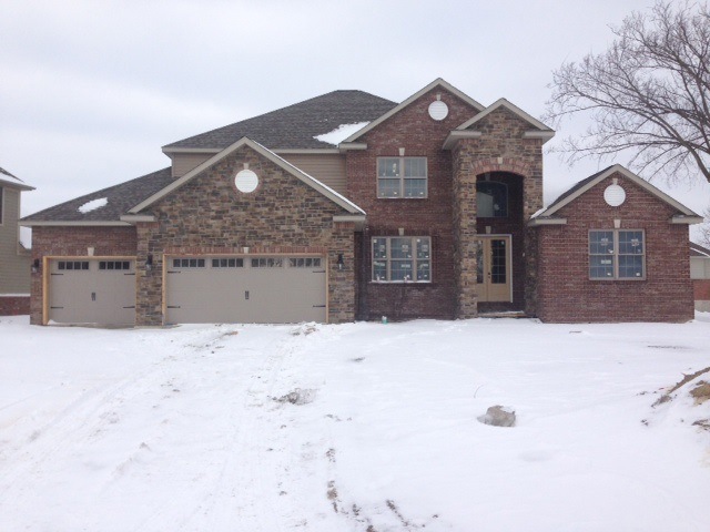 Custom Kitchen with double ovens, gas stove, granite countertops, finished walk out basement with bar