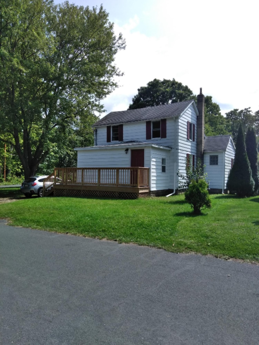Kitchen has plenty of kitchen cabinets along with a pantry .Slider off dining room leads to large deck. Upstairs bedroom is huge, Downstairs bedroom has walk-in closet, Main floor laundry. Newer flooring. Back room could be used as an office. Fenced in backyard and two and a half car garage. Easy access to I-94.