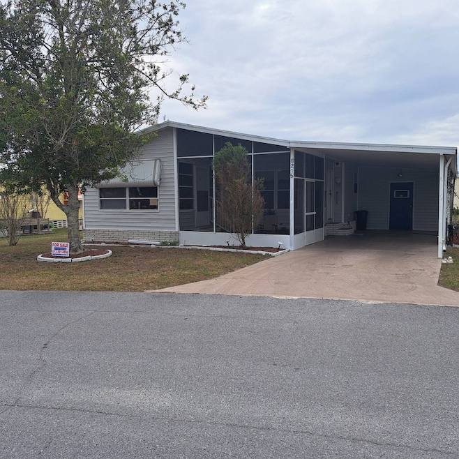 Located in a gated 55+ community with a large clubhouse with a fully equipped kitchen, a pool table, gym and library. Several activities to keep you entertained and even a dog park for your furry friends. Beautiful park area for BBQ and enjoy the Florida weather. Great place to live. This home is on a large lot with a nice backyard; beautiful screened patio and wonderful carport that also includes an oversized shed with a washer/dryer and plenty of storage. This lovely home has a dining area with windows for natural light and a kitchen that includes a coffee bar and space for small breakfast nook. All appliances included with plenty of storage and laminate countertops. The Florida room is surrounded by windows and is a lovely place to sit and enjoy your day. Large living room with luxury vinyl planking throughout. Oversized primary bedroom with lovely ensuite that has a walk in shower and french doors. Guest bathroom also has a walk in shower. This home has a wonderful living space and very comfortable. Well priced and move in ready. Call now for an appointment, at this low price this home won't last long. Lot rent is only $925 but must be verified by management.