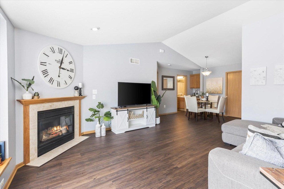 Enjoy the sweet life in this convenient split floor plan condo. The large picture window keeps the living area bright and showcases the brand new luxury vinyl plank flooring beautifully. The gas fireplace will keep you cozy this fall and the adjacent dining area is lovely with dedicated built in cabinets. The two bedrooms sit on opposite sides of the condo offering great privacy and two full baths keep daily life easy. The kitchen is laid out thoughtfully with loads of counter and cabinet space. In-unit laundry and great storage keep chores a breeze and the sweet patio outside your front door is great for soaking up the sun. The clubhouse house and pool are fabulous amenities to take advantage of with such affordable monthly dues. New water heater, attached garage, don't miss it!