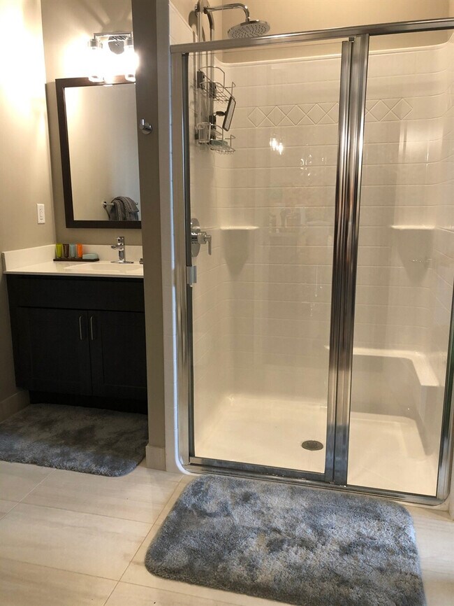 As a resident, you'll have access to an array of building amenities, including a fitness room, a bike garage, a community room, an outdoor area with seating and a grill, a dedicated dog park, and parking in the gated lot outside the building.