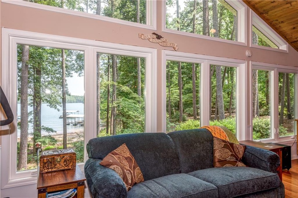 YOU WILL KNOW YOU LIVE ON LAKE LANIER! Gorgeous Setting w/Year Round BIG WATER VIEWS+Sandy Beach. Gentle Lighted Path to Covered Slip-Dock w/Swim Platform-Electricity in Place. DESIRABLE Garrett Road Location (high $$ homes) on Very Private Access Road of 5 homes. You'll Love this Updated Open Ranch w/Hardwood Flrs & Vaulted Ceilings- Great Room + Lakeside Gathering Room w/Stone Fireplace &Wood Ceiling. Dining Area Open to Kitchen w/Granite Counters&Snack Bar+Stainless Steel Appls. Lakeside Deck w/Sunset Views. Lake Lanier Islands Amenities & Sunset Cove Minutes Away!