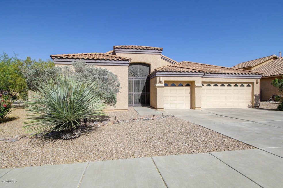 Must see, wonderful 4 Bedroom home nestled deep into Empire Vista and very near to Craycroft Elementary. This very popular Lennar Everest home is ready to move into now with kitchen appliance package, feature rich LARGE kitchen (granite, SS appls, roll-outs, RF INCL), Bonus Room, wonderful backyard, and Amazing mountain views! This floor plan has a huge gathering room + large Bonus Room off kitchen. Custom color paint throughout is warm and inviting. Master Suite is private w/lg walk-in closet and generous sized bathroom with soaker tub, walk-in shower & dual vanities. Oversized corner lot that is elevated from neighbors, 3 Car Garage, & low maintenance tile roof top off this property very nicely. 15 minutes from Davis Monthan AFB & quick access to I-10 gets you a short commute anywhere.