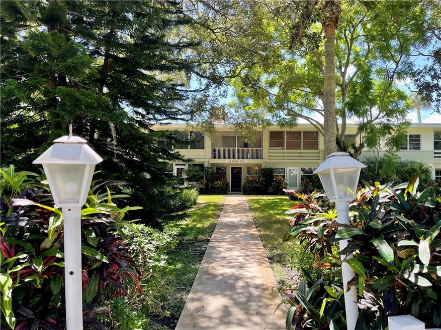 Welcome to this retro condo located 5 minutes from the beaches! This second-floor walkup unit offers 2 bedrooms & 2 full bathrooms. Cozy kitchen, large living and dining room open up to your Florida room with beautiful garden views. Shops, grocery stores and restaurants are steps away from your front door. Live the laidback Florida lifestyle in this well-kept condo community. New roof in 2023! 1 carport and new laundry facilities. 2 small pets allowed! Low condo dues of only $378.00 per month! Easy rental potential. Roof top community terrace. Sizes are approx/subj to error.