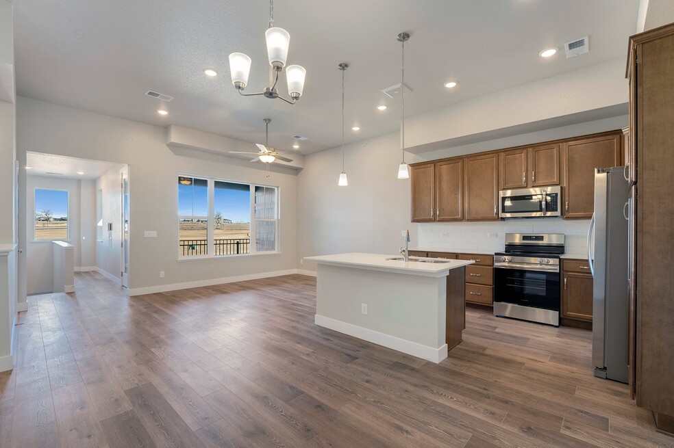 Start your story in the Monarch at Wilder. Our Monarch floor plan is part of our Discovery series offering: 3 bedrooms 2 baths Attached 1-car garage A one-year new home warranty Wonderfully set in the Timnath Ranch community The best of Timnath, Colorado living Laminate plank flooring extended into the living room, study, and hallway Maple cabinets in Porter color Cabinet hardware White sand quartz countertops in kitchen and baths Brushed nickel kitchen faucet, lighting, and plumbing fixtures Stainless steel Frigidaire refrigerator Ceiling fan in living room and primary bedroom This stacked ranch-style condominium is on the upper-level offering vaulted ceilings and a thoughtful open design that maximizes natural light and functional living space.