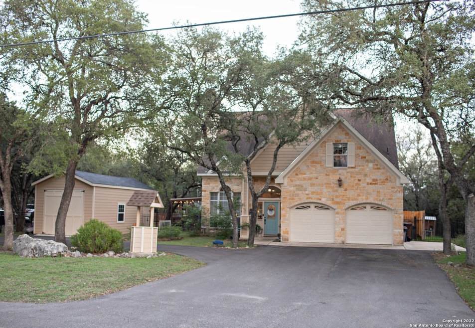 Enjoy a morning coffee on this expansive wrap-around deck overlooking beautiful views, often grazed by Axis and cows. There is a large circle drive, 2-car attached garage and 14X28 detached shop. Custom built-ins throughout home for added functionality. Luxurious hardwood up stairs and new carpet on the stairs. High ceilings and windows showcase this home's beauty and natural light. Home has access to river park and pool, and is sure to go fast! HOA has riverfront 1/2 mile from home.