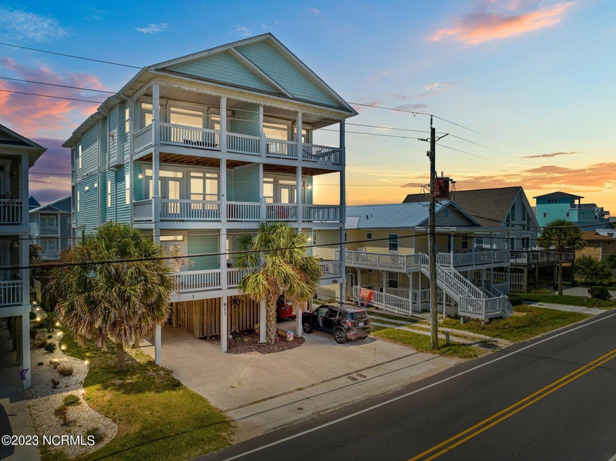 Welcome to your dream beach getaway in Carolina Beach! This exquisite 5-bedroom, 4-full bath, and 1-half bath home is a true gem nestled in a prime location. With breathtaking ocean views you'll experience the tranquility of beachside living at its finest. Positioned as a second-row property, this home offers immediate access to the beach and provides the serenity of being just steps away from the water's edge. The many covered balconies provide you with ample opportunities to soak in a beautiful sunrise in the morning or a stunning sunset in the evening. The first floor boasts three bedrooms and two bathrooms ensuring a refreshing and rejuvenating experience for residents and guests alike. Ascending to the second floor you will find the primary bedroom and additional bedroom both with ensuite bathrooms. The primary bedroom is a true retreat, featuring its own private balcony with ocean views, an ensuite bathroom with a walk in shower, soaking tub, and double vanities. Making your way up to the third floor, you'll be captivated by the beautiful ocean views and the spacious and inviting open floor plan that includes the main living area, kitchen and formal dining room. Natural light floods this area, beautifully highlighting the gleaming hardwood floors that span throughout. This creates a seamless flow, allowing for comfortable gatherings and memorable moments with family and friends. The kitchen is well appointed with granite countertops, tile backsplash, newer appliances, countertop seating, and a pantry. This home provides the convenience of an elevator going from the ground level to the main living space located on the top floor. After a day of sun and sand, indulge in the convenience of an outdoor shower - a perfect way to rinse off and relax before stepping indoors. Throughout you will find multiple storage closets inside as well as two spacious storage spaces on the ground level to neatly tuck away your beach essentials.