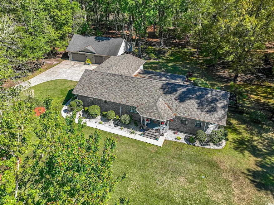 Ravishing four bedroom (three true bedrooms with a bonus room), two bath house with a three-car, detached barn garage (40X30) on almost two acres in a NON-HOA community. Engineered hard wood floors in main areas, tile in wet areas, and carpet in the bedrooms. The clean look kitchen boasts white cabinets, white appliances, granite counters, tile backsplash, an eat-in kitchen island. Directly off the kitchen is the formal dining room and laundry room with cabinets and a countertop. The sunken living room has vaulted ceilings with a ceiling fan, custom fireplace, and sliders to the all seasons room. This split bedroom floorplan offers a primary suite with vaulted ceilings and a fan, sitting area, walk-in closet with custom shelving, and a private bath with double sinks and a custom tile walk-in shower. The other two bedrooms have ceiling fans and share a hall bath with vanity and a tub shower combination. Upstairs is the sizable bonus room with a vaulted ceiling and a ceiling fan. The vast all seasons room has two ceiling fans and walls of glass looking into the backyard. Enormous fenced in, private backyard with pavered patio, custom fire pit and plenty of room for entertainment or relaxation. The main house has an attached two car garage with cabinets, a countertop, and a wash sink. The Barn Style, detached, three car garage has tons of room for whatever your heart desires and also has space up the stairs on the second level for storage, entertainment, or rooms. Shady Branch Road is located close to shopping, dining, entertainment, hospitals, a short drive to the beach and Enterprise boat landing which has access to the Intercoastal Waterway. Square footage is approximate and not guaranteed, buyer is responsible for verification.