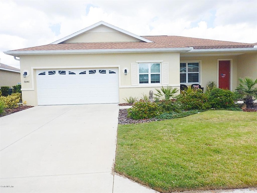 Wonderful Berkshire model home located in Windsor West. This lovely home has 2 bedrooms, 2 baths. a flex room, and a 2.5 garage. There is wood laminate and tile flooring throughout the home and the kitchen features pretty maple cabinets and a beautiful backsplash. The laundry room is large with plenty of storage. Spacious master bedroom with huge closet and master bath with double vanity, The home has a whole house filtration system. Step out to your very own Pergola and enjoy the Florida sunshine! Located in Ocala's premier, gated, 55+ community, loaded with amenities, including golf cart access to two shopping centers.