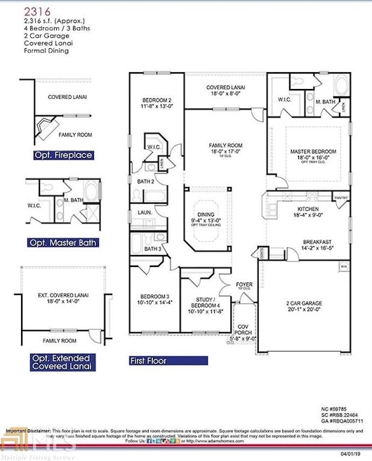This 4 BR / 3 BA Ranch Features a covered lanai, LVP flooring in all main areas (carpet in bedrooms), tile floors in all bathrooms, electric fireplace (family room) and side entry garage. The master bath has a separate tiled tub and shower with large walk-in closet and double vanities. Both the master bedroom and dining room feature tray ceilings. The dining area is separated by beautiful columns and is open to both the family room and kitchen.