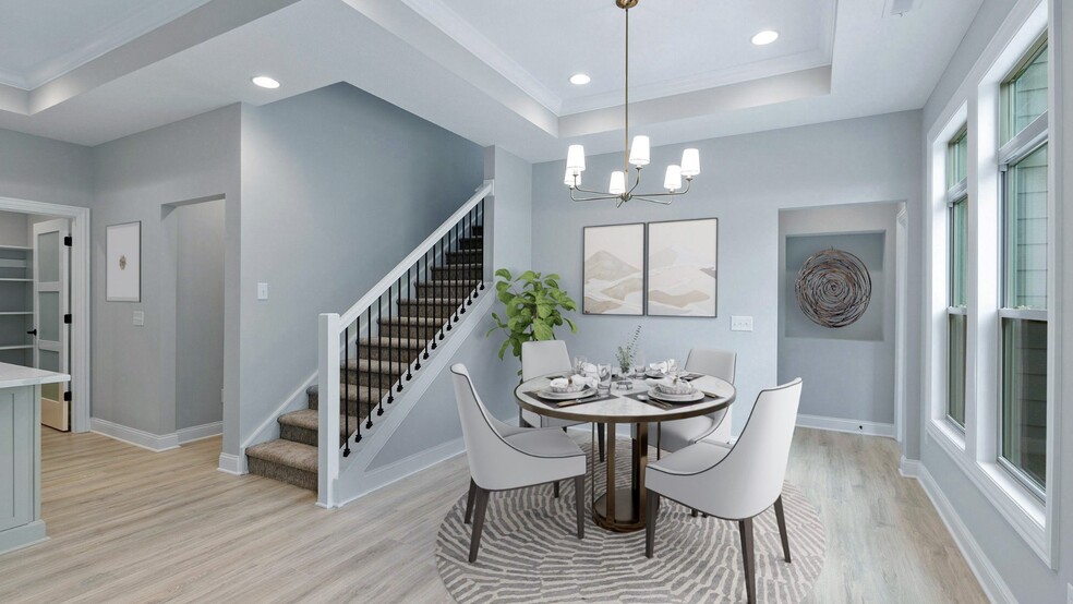 The Haven, part of the Celebration Series, includes a 2 1/2 rear-entry garage providing enhanced curb appeal and opportunity for additional storage. The Haven offers an open, light-filled floorplan featuring two bedrooms on the first floor, a den, and a private, outdoor courtyard. The spacious kitchen includes a large center island offering views to the living and dining rooms. The first-floor owner's suite features an optional sitting room with access to the outdoor courtyard and a large walk-in closet. Other highlights include a den and a first-floor laundry room and mud room.