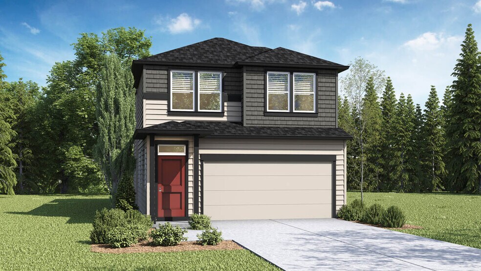 Explore the Rose floor plan, a stunning two-story single-family home offered at the Butler Creek Crossing community in Gresham. Boasting 1,689 square feet, this home features 3 bedrooms plus a tech niche, 2.5 bathrooms, and an attached 2-car garage. Shake off the rain on the covered front porch and step inside this beautiful home, where you'll notice the convenience of a powder room and the door to the 2-car garage before entering the designated dining room area. Warm yourself in front of the fireplace in the open concept living room, which flows seamlessly into the kitchen and dining areas, providing the perfect space for quality time or entertaining guests. The open kitchen showcases an in-island sink, and high-quality finishes. Head upstairs to find the spacious primary bedroom with an en suite bathroom featuring a walk-in closet and a double sink vanity. The secondary bathroom is in proximity to the second and third bedrooms for easy access. The tech niche area can transform into a cozy home office providing even more space for you to play with. In addition to the beautiful design, every D.R. Horton home is equipped with Smart Home technology and a 10-year limited warranty plan. You'll always stay connected and have control over your energy usage and peace of mind. Schedule a tour today and find your home in our new Butler Creek Crossing community with the Rose floor plan! Photos are representative of plan only and may vary as built.