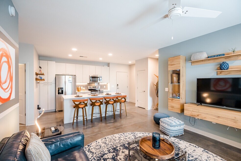 With thoughtful design and exclusive community amenities, The Backyard Apartments at One North is your destination for luxury apartments in North Kansas City, Missouri! We've redefined what upscale living means in our exceptional studio, one, and two bedroom apartments, that offer up to 1,190 square feet of living space with a collection of stylish interior touches. Come home to plank flooring, unique color palettes, floor-to-ceiling windows, amazing city views, a washer and dryer in-unit, and a variety of other modern finishes. Our gourmet kitchen, featuring elegant quartz countertops, will have you cooking like a pro in no time!