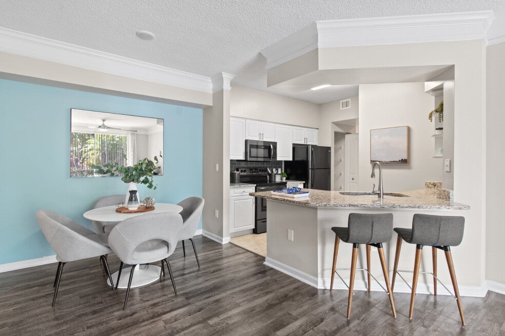 Our newly renovated luxury apartments homes boast nine-foot ceilings with elegant crown molding detail, black stainless-steel appliances, wood plank flooring, granite countertops, and large walk-in closets. Soak up the sun at our luxurious pool with resort-style furnishings, outdoor fire pit, and summer kitchen.