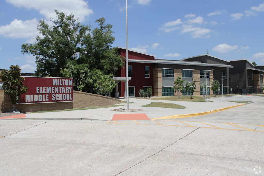 Milton Elementary School is a public school for students in grades Pre-K-8 in Lafayette, LA and is served by the Lafayette Parish Public Schools in Louisiana. The school has a total enrollment of 1,300 and maintains a student-teacher ratio of 19:1. Academic records show that 58% of students achieve proficiency in math, and 65% are proficient in reading. Milton Elementary School has received feedback and ratings, with a Niche grade of B+ and a GreatSchools Rating of 9 out of 10. The average home value in this area is $279,673. Discover additional schools in the area, like Cecil Picard Elementary School at Maurice, Ernest Gallet Elementary School, Westminster Christian Academy, and more. Learn more about what Lafayette has to offer, and browse homes for sale and for rent near Milton Elementary School.
