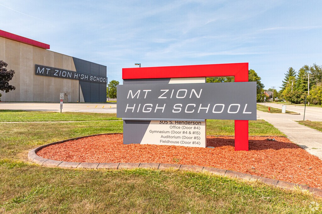 Mt. Zion High School is a public school for students in grades 9-12 in Mount Zion, IL, in the Mount Zion neighborhood, and is served by the Mount Zion Community Unit School District No. 3 in Illinois. Annual tuition is $0. The school has a total enrollment of 778 and maintains a student-teacher ratio of 19:1. Academic records show that 42% of students achieve proficiency in math, and 42% are proficient in reading. Mt. Zion High School has received feedback and ratings, with a Niche grade of B and a GreatSchools Rating of 9 out of 10. The average GPA is 3.66, the graduation rate is 92%, and average standardized test scores include an SAT score of 1200 and an ACT score of 27. The average home value in this area is $284,914. Discover additional schools in the area, like Hillside Bethel Tabernacle, Northwest Christian Campus, Lutheran School Association of Decatur, and more. Learn more about what Mount Zion has to offer, and browse homes for sale and for rent near Mt. Zion High School.