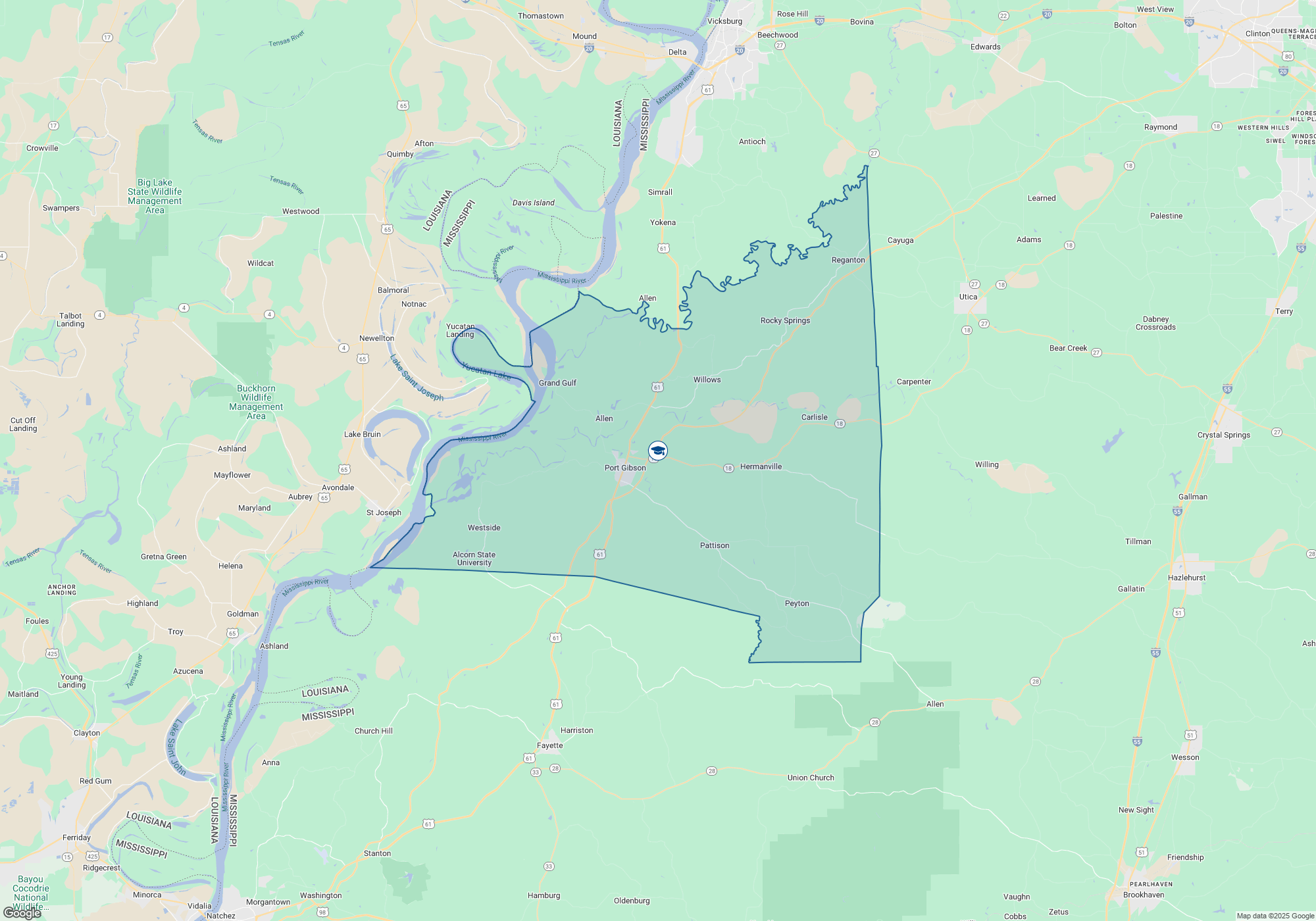 Port Gibson High School is a public school for students in grades 9-12 in Port Gibson, MS and is served by the Claiborne County School District in Mississippi. Annual tuition is $0. The school has a total enrollment of 374 and maintains a student-teacher ratio of 15:1. Academic records show that 12% of students achieve proficiency in math, and 22% are proficient in reading. Port Gibson High School has received feedback and ratings, with a Niche grade of C and a GreatSchools Rating of 6 out of 10. The average GPA is 3.46, the graduation rate is 92%, and the average ACT score is 18. Discover additional schools in the area, like Claiborne County Voc Complex, Chamberlain-Hunt Academy, Port Gibson Middle School, and more. Learn more about what Port Gibson has to offer, and browse homes for sale and for rent near Port Gibson High School.