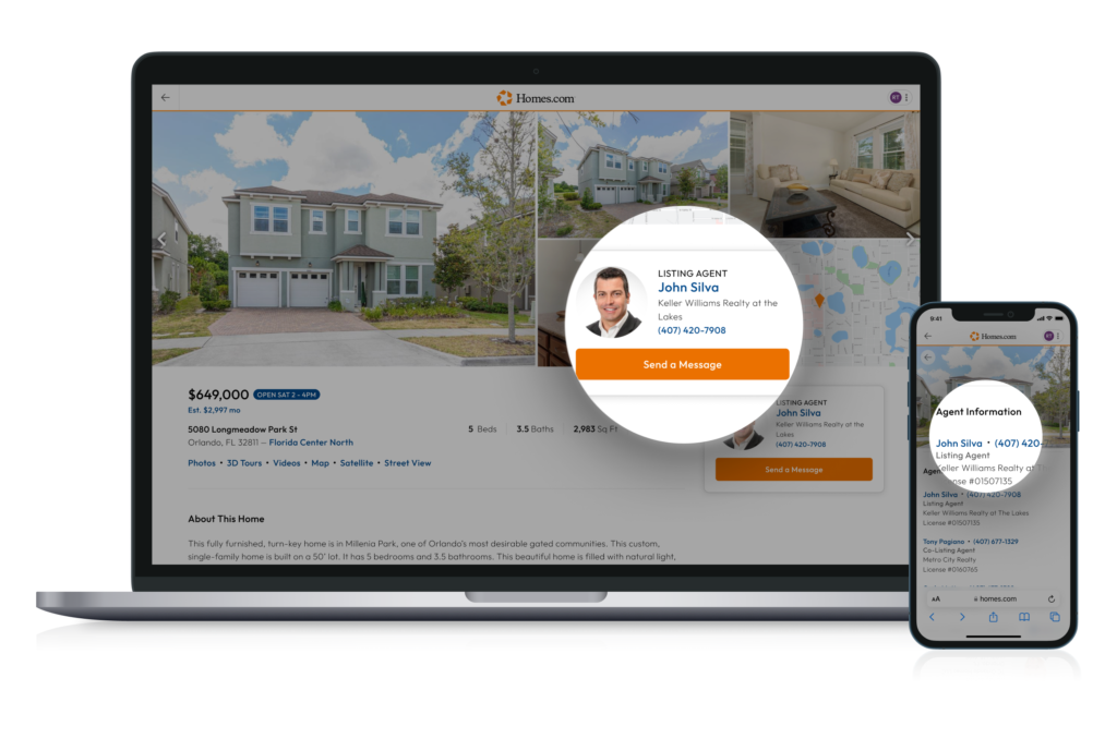 At Homes.com, our priority is ensuring that buyers will always get the true listing agent for any home they are looking at. We only connect you with the real listing agent for the home so you can trust that you’ll be speaking with the agent who represents the seller, knows the house, and can answer all of your questions.